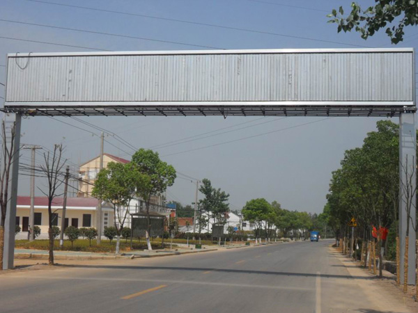三面翻广告牌是由一组并排的三棱柱组成,三棱柱由特制铝型材制作,通过电机驱动所有的三棱柱围绕各自中心轴转动,利用三棱柱的三个侧面形成三幅画面。所以三面翻广告牌具有三倍表现的空间和视觉动感的优势。