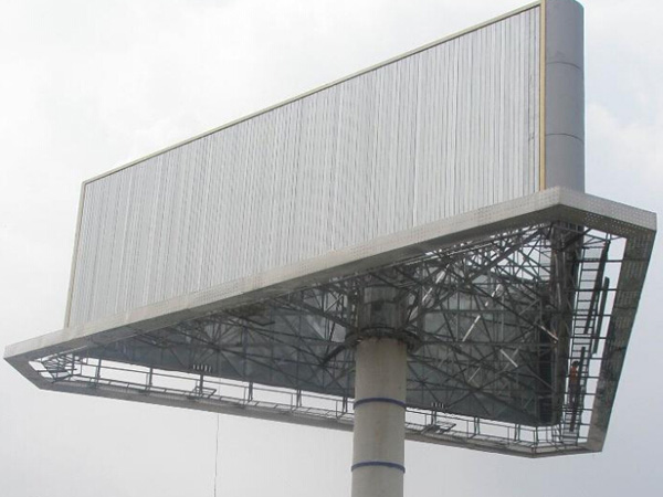 三面翻广告牌是由一组并排的三棱柱组成,三棱柱由特制铝型材制作,通过电机驱动所有的三棱柱围绕各自中心轴转动,利用三棱柱的三个侧面形成三幅画面。所以三面翻广告牌具有三倍表现的空间和视觉动感的优势。