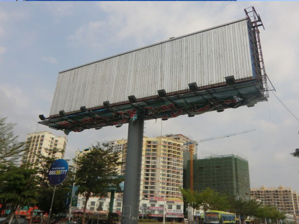 三面翻广告牌是由一组并排的三棱柱组成,三棱柱由特制铝型材制作,通过电机驱动所有的三棱柱围绕各自中心轴转动,利用三棱柱的三个侧面形成三幅画面。所以三面翻广告牌具有三倍表现的空间和视觉动感的优势。